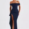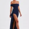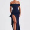 Experience the epitome of elegance in our Josephine maxi dress, crafted from luxurious stretch crepe fabric. With a touch of vintage charm, this dress features an alluring bardot fit that gracefully sweeps over the shoulders. The fitted bodice cinches your waist and accentuates your curves flawlessly. Highlighted by a thigh-high skirt split and elegant gathered detail on the side, it’s a timeless piece that exudes sophistication.