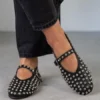 indulge in the perfect blend of luxury and comfort with the Aiden Paris Crystal Studded Ballet Flats. Adorned with delicate crystal embellishments, these flats radiate sophistication while providing all-day wearability. Designed for the modern woman who values both style and ease, they’re the ultimate statement of understated glamour.