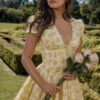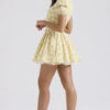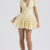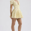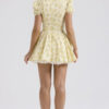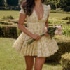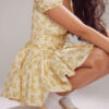 Indulge in the allure of our whimsical prints that evoke visions of far-off destinations. Adorned with a vintage floral motif, this stretch cotton-rich mini dress features a fitted bodice and softly pleated skirt, elegantly suspended by a frilly tulle underskirt.