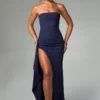 Enter your soft girl era in the Angelina maxi dress, crafted in our luxury non-stretch cotton blend fabric that hugs the body for the silhouette of dreams. This strapless design is complete with a voluminous frilled high low skirt that’s super pretty and playful.