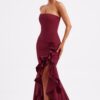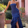 Enter your soft girl era in the Angelina maxi dress, crafted in our luxury non-stretch cotton that hugs the body for the silhouette of dreams. This strapless design is complete with a voluminous frilled high low skirt that’s super pretty and playful.