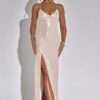 Shine bright this party season in the Bells Maxi Dress, a floor-sweeping gown designed to turn heads. Crafted from premium bias-cut sparkle fabric, it drapes effortlessly over your figure, offering a flattering and glamorous silhouette.