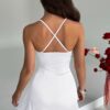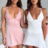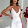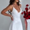 Pure party perfection, the Clarise Mini Dress is crafted from luxury stretch satin that hugs your curves and skims effortlessly over the skirt. The plunge neckline with pleated cups and adjustable cross-back straps ensure a flawless, figure-flattering fit, while ruffle detailing along each side adds a flirty, feminine touch.