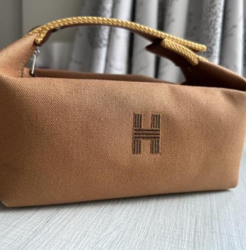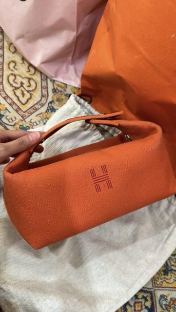A versatile Hermès-inspired pouch is now available in two sizes—small and large! This stylish dupe features a removable snap-button handle and a wide opening for easy storage. Perfect as a cosmetic pouch or for organizing small essentials like tissues and disinfectant sprays. The large size offers generous storage, making it ideal for traveling, while the small size doubles as a chic handbag for quick outings. Functional, elegant, and perfect for any occasion!