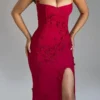 Meet Dalary… You asked, we delivered!! Dalary lined. We promise you aren’t dreaming! This one-of-a-kind dress is soft girl perfection, made in a delicate sheer mesh with individually hand stitched playful flower appliques scattered over the body. With a cupped bust to frame your chest and a thigh high split, this dress moulds to the contours of your body for that second skin fit.