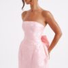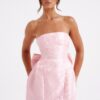 Step into the season’s ultimate statement piece with the Eleana Mini Dress. Crafted from premium non-stretch floral jacquard, this strapless design features a waist-cinching bodice and a structured, voluminous skirt for a perfectly feminine silhouette.