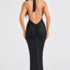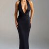 Capture everyone’s attention at every celebration this season with the Evangeline maxi dress. Its elegant, flowing design, crafted from high-quality jersey, beautifully accentuates your figure. Featuring a plunging neckline and halter straps that tie at the back, this dress is as functional as it is fashionable.