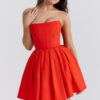 Crafted with precision, the ‘Evelina’ mini dress exudes femininity in every detail. Its soft peached twill fabric lends a luxurious touch, while the strapless, corseted bodice accentuates your waistline. The perfectly pleated mini skirt, paired with a tulle underskirt, adds a delightful volume, making it an ideal choice for sunny getaways. With a convenient back zipper closure, it offers both style and ease of wear. Available in two lengths to cater to every height, this dress is a versatile addition to your wardrobe.