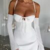 The underwired pleated cups provide support and shape, complemented by a tie detail at the bust for a feminine finish. Perfect for date nights, garden parties, or special occasions, Fiona combines delicate detailing with a flattering silhouette for a dreamy, must-have mini.