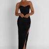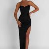 Get ready to feel sculpted and glamorous in Giulianna, the stunning new maxi dress guaranteed to turn heads. Crafted from our premium stretch mesh fabric, this seductive design enhances your silhouette effortlessly. Featuring a corset-style waist with boning for added shape, pointed cups, and a daring thigh-high split, Giovanna exudes allure and sophistication.