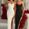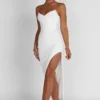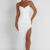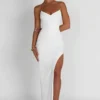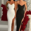 Get ready to feel sculpted and glamorous in Giuliana, the stunning new maxi dress guaranteed to turn heads. Crafted from our premium stretch mesh fabric, this seductive design enhances your silhouette effortlessly. Featuring a corset-style waist with boning for added shape, pointed cups, and a daring thigh-high split, Giovanna exudes allure and sophistication.