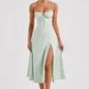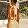 Introducing the new Heavy Hearted Satin Maxi Dress in a stunning new colorway! Cut on the bias with an open back halter neck design, it’s perfect for dancing the night away. Embrace golden skies, balmy nights, and nightclub silhouettes in style.
