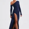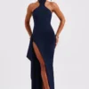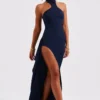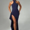 With its incredibly sleek silhouette, Isabella tops our must-have list this season. Crafted from luxurious stretch crepe fabric that hugs every curve, this maxi dress showcases a stunning drape detail split and a chic high neck.
