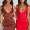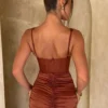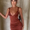Serve looks in Izabella, our siren dress that will turn heads this party season. With a sexy corset shape to the top, the dress has a plunge neckline to frame the bust and all-over pleat detailing. Made in our luxury stretch satin, Izabella cinches the waist and fits your body like a glove. Wear her with sleek hair and glowing make-up.