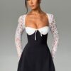 Dreaming of dainty, delicate details? Meet Jacinta, your new fave mini made in luxury chiffon with sheer lace sleeves, an underwired bust and tie details. This A-line milkmaid inspired design will be your go-to throughout the season, whether it’s styled with knee high boots for bottomless brunch or high platforms for your next date night.