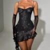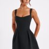 Janiyah is THE dress for party season with the prettiest silhouette. This mini is cut from a premium, structured woven fabric with a corseted body that cinches the waist and drops to a low v shape. The look is complete with an iconic voluminous skirt.
