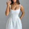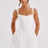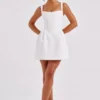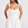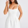 Janiyah is THE dress for party season with the prettiest silhouette. This mini is cut from a premium, structured woven fabric with a corseted body that cinches the waist and drops to a low v shape. The look is complete with an iconic voluminous skirt.