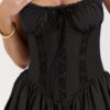 Indulge in romantic evenings with our enchanting Jasmine Mini Dress. Crafted from a luxurious cotton blend, it features delicate lace trims adorning the bodice and skirt. The oversized bow detail at the back adds a playful touch, while the boned bodice ensures a flattering silhouette.