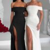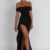 Experience the epitome of elegance in our Josephine maxi dress, crafted from luxurious stretch crepe fabric. With a touch of vintage charm, this dress features an alluring bardot fit that gracefully sweeps over the shoulders. The fitted bodice cinches your waist and accentuates your curves flawlessly. Highlighted by a thigh-high skirt split and elegant gathered detail on the side, it’s a timeless piece that exudes sophistication.
