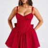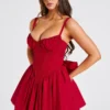 The perfect dress for date nights with the prettiest silhouette, Josie is cut from our premium cotton blend with flirty lace trims to the bust and skirt. With an oversized bow to the back, this flirty design has a boned bodice for the ultimate snatched waist, which is a pretty contrast to the super full skirt.