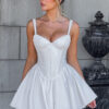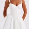 The perfect dress for date nights with the prettiest silhouette, Josie is cut from our premium cotton blend with flirty lace trims to the bust and skirt. With an oversized bow to the back, this flirty design has a boned bodice for the ultimate snatched waist, which is a pretty contrast to the super full skirt.