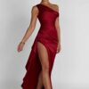 Introducing the epitome of timeless elegance and romance, the Juliette maxi dress steals the spotlight this season. Crafted from luxurious bias-cut satin, it not only accentuates the figure but also drapes gracefully. Featuring an asymmetric neckline, built-in corset for waist definition, and intricate gathered detailing with a daring thigh-high split, this design exudes sophistication. A touch of allure is added with an elegant drape detail cascading from one side, elevating the dress to a truly special piece.