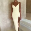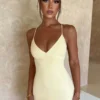 The must-have dress for every occasion this season, the Kiara midi exudes romance and femininity. Crafted from our signature double-layered fabric, this dress hugs the body beautifully. Featuring a plunging neckline and a thigh-high split, the low back with crossover tie straps steals the show with its stunning detail.