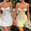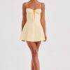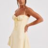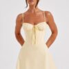 Brighten your wardrobe with the Lacey Mini Dress, a flirty and feminine essential. Crafted from super lightweight, luxe cotton, this mini features a waist-cinching ruched corset bodice with underwired cups and a delicate bow tie at the bust, ensuring a flattering and feminine fit.