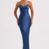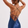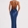 The Layla Maxi Dress is the perfect show-stopping piece, made for dancing the night away. Crafted from luxurious mid-stretch satin with a lustrous sheen, it hugs your body and effortlessly skims the floor. The ultra-low, cut-out back is framed by crossover straps with a self-tie fastening. Pair it with minimal gold jewelry and glittering heels for an elegant look.