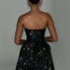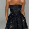 - Strapless ruched corset design.
