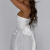 THE dress of the season has landed and you’re going to be obsessed. Meet Melinda, our dreamy mini with a pretty, voluminous skirt and waist cinching bodice. Fastening with a zip to the back, an oversized bow completes the look for perfect feminine drama.