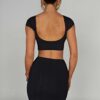 Double lined with a buttery soft, second skin feel, our brand new Midnight Elegance Blouse is one to wear on repeat. Serving stretch and snapping back to shape to contour your body, this high neck design has flattering cap sleeves and a sleek low scoop back. Pair with our Yasmin maxi for the basic look of your dreams.