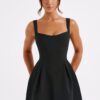 This glittering mini is party perfection, made in our rhinestone mesh fabric that hugs your body for the silhouette of dreams. Complete with a sexy, halter plunge neck, wear yours with mule heels and a sleek, high knot.Â