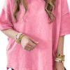 • With its drop shoulder design and oversized fit, this tee offers a casual and effortlessly cool look that can be paired with jeans, shorts, or leggings for a laid-back style.