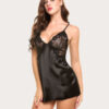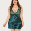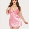Plus Size V Neck Lace Satin Sleepwear