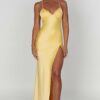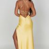 If you are looking for a super soft, romantic silhouette that skims over the body and enhances your figure, meet the Ruby maxi. Made from our silky soft satin with a bias cut, Ruby’s features a plunge neck, super low back with tie straps and a thigh high split.