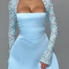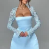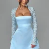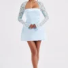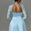 Ultra feminine and alluring, the Sadie mini is made for romantic dinner dates, garden parties and so much more. Cut from our premium satin fabric, the body of the dress features a square neckline and ultra cinched waist for the silhouette of dreams, contrasted by a voluminous bubble skirt. The look is complete with sheer lace sleeves with flared cuffs.