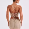 The perfect top for your next summer soiree, Sunlit is made in our premium crochet knit with boning in the bodice for a snatched fit. The design is complete with triangle shaped cups, eyelet detail to front and showstopping open back that laces up. Partner with the matching Sunlit skirt and beachy waves.