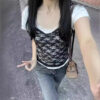 The off-the-shoulder neckline strikes the perfect balance of romantic and daring, while the long sleeves with tie accents add a touch of detail and drama. A cut-out bust with tie detail gives the design a playful, sexy edge, and the cropped length makes it the ultimate pairing piece for high-waist denim, skirts, or tailored trousers.